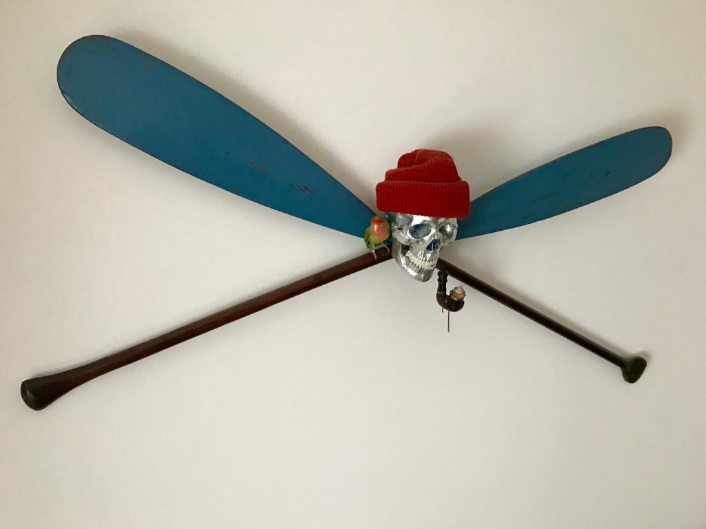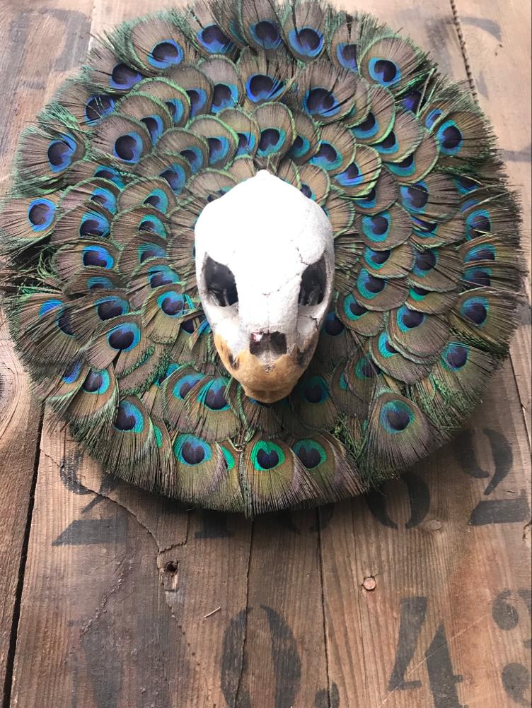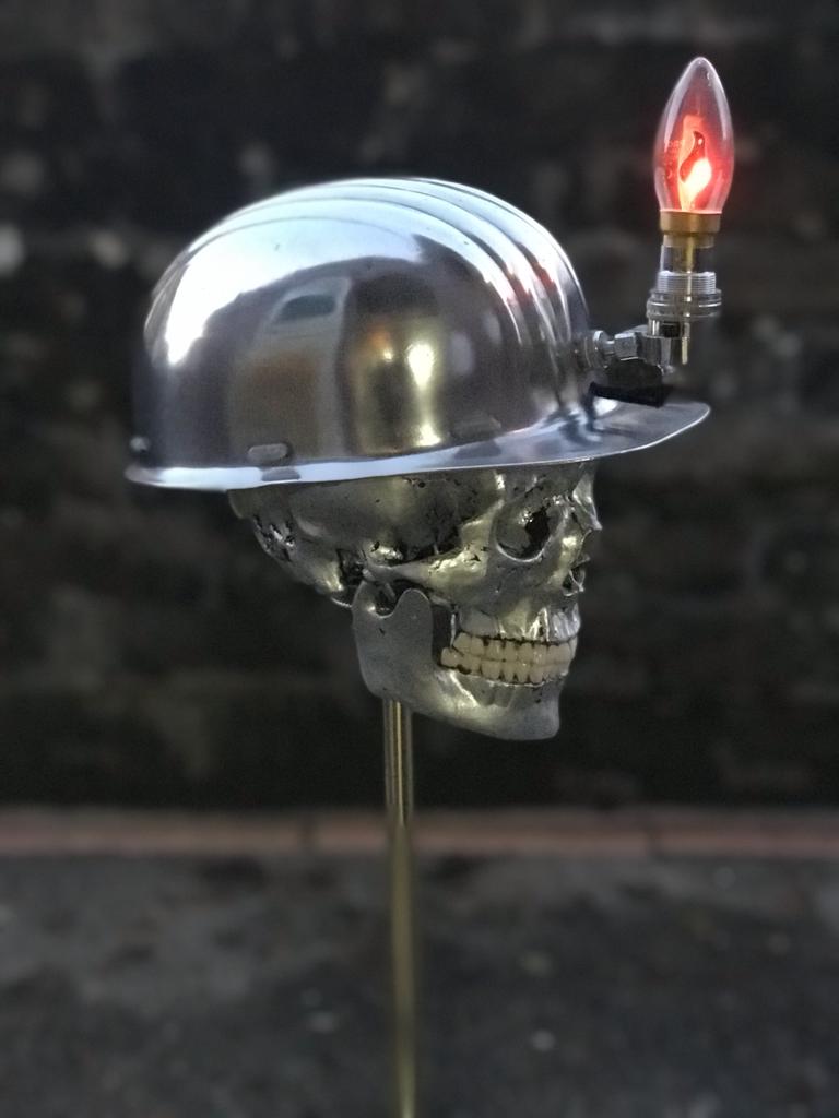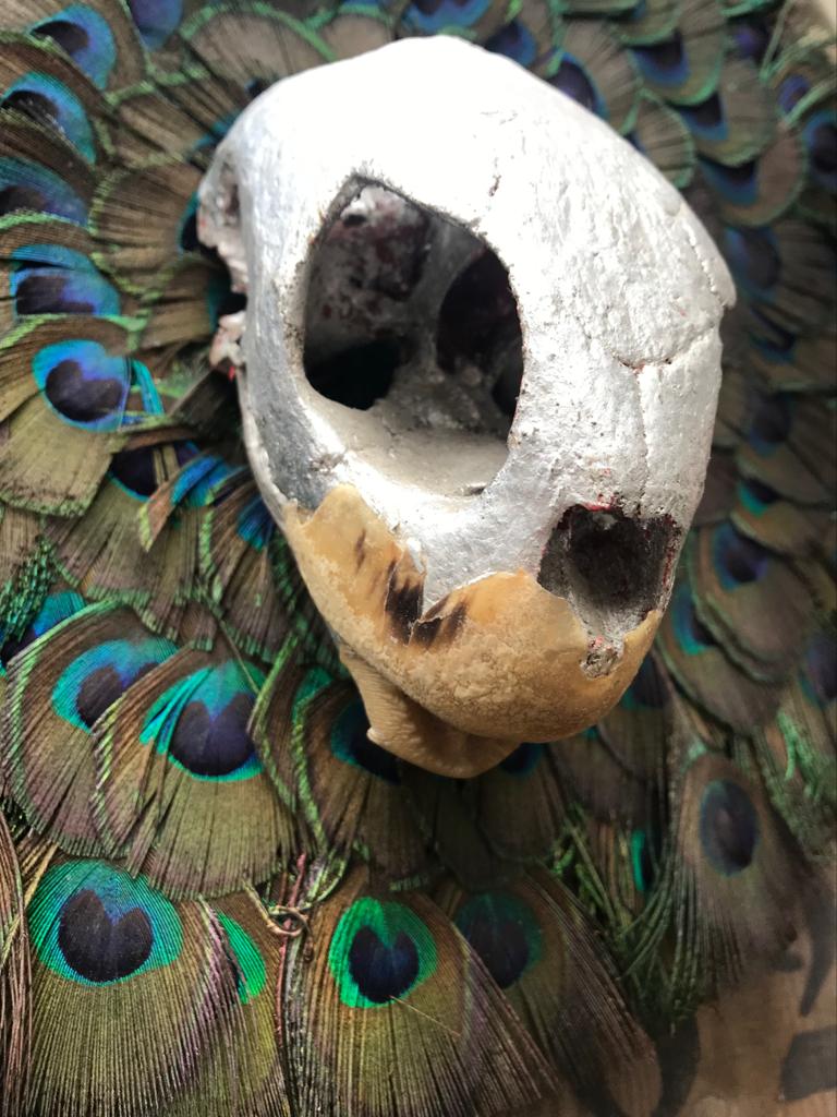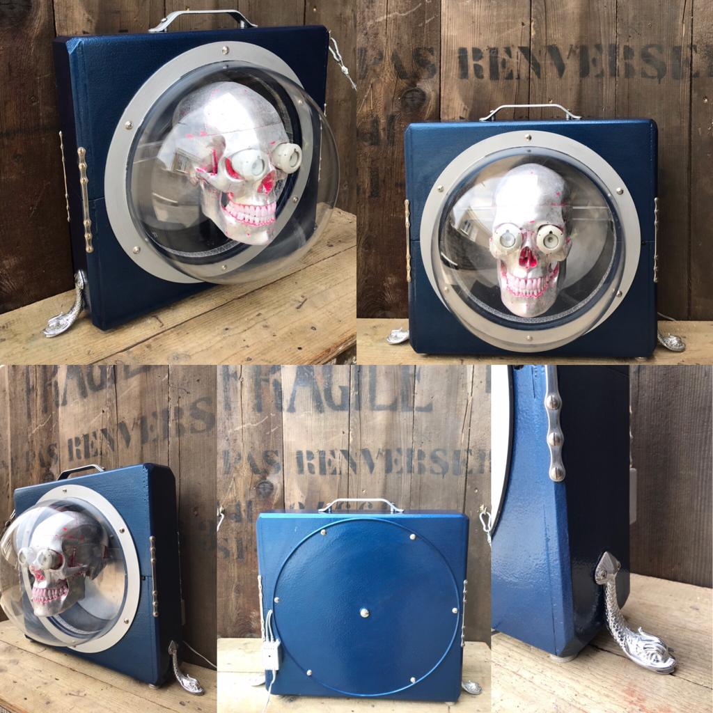 El SykesKo is a British artist who explores what for some people who would be called a dark universe. The philosophy behind his representations of death are, from my perspective, is quite ironical. Each of his sculptures is meticulously assembled. Each element is added with particular attention to detail to bring humor and lightness to what frightens so many people: “death.” According to El Sykesko, death could be approached with more fun and grace. After all, isn’t death a liberating passage and life merely a step? With these sculptures, El Sykesko questions our perceptions of what may seem dark to us. Each skull is pure and minimalist.He recovers or transforms accessories, fabrics found in his garage or flea markets, to bring them a second life, and coat these skulls. Because of his sculptures, El SykesKo confronts us with taboos and makes death, part of our daily life. Each skull has all a story to tell. Look at them into details, and you’ll be able to see what their life they had.