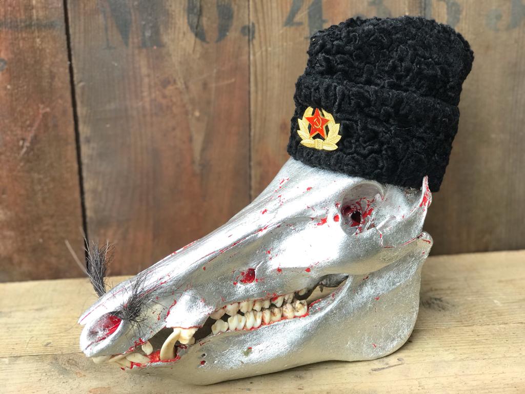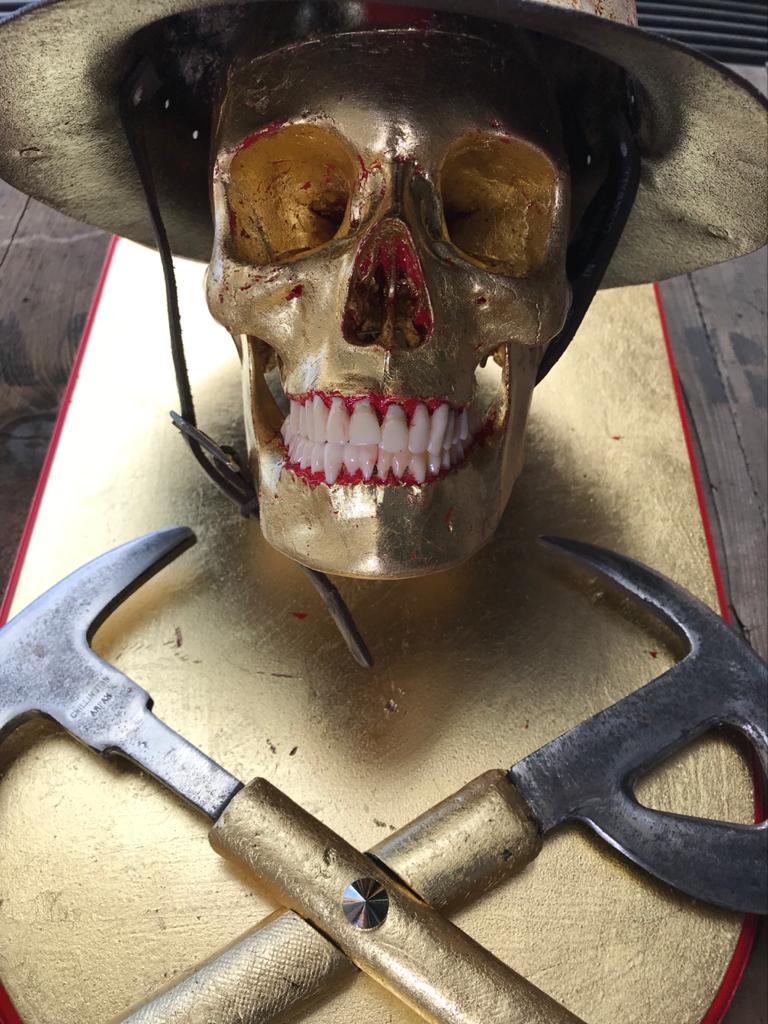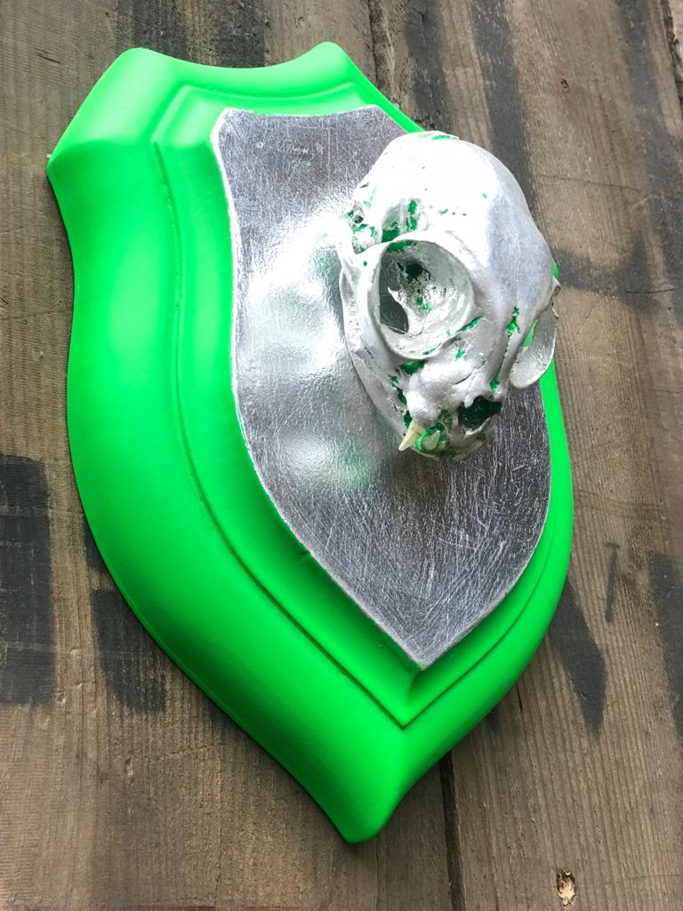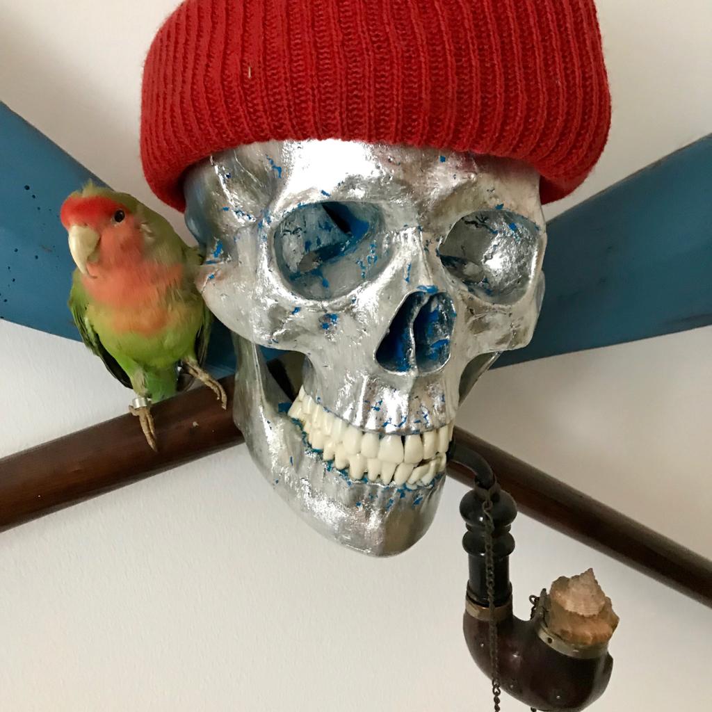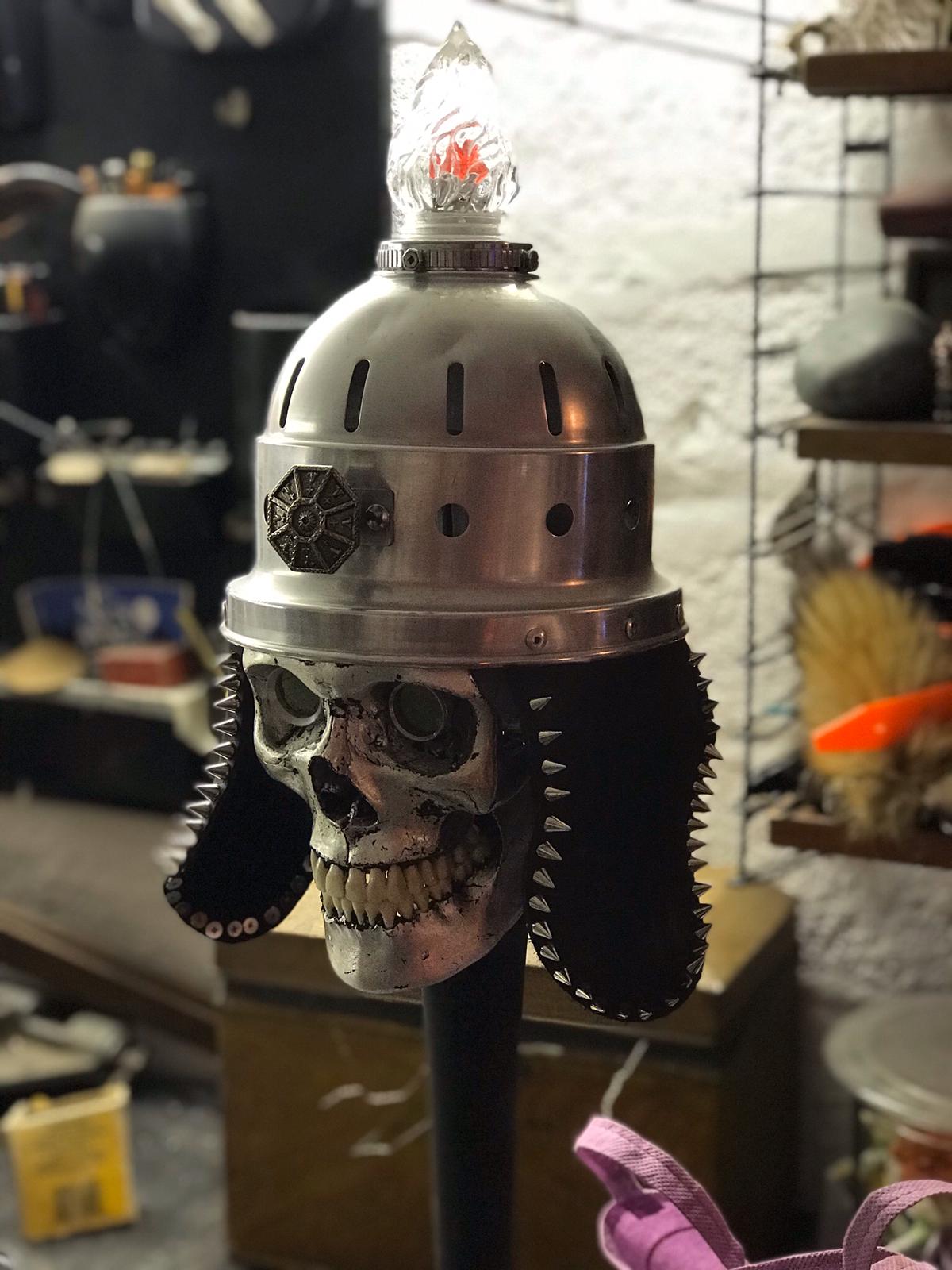 El SykesKo is a British artist who explores what for some people who would be called a dark universe. The philosophy behind his representations of death are, from my perspective, is quite ironical. Each of his sculptures is meticulously assembled. Each element is added with particular attention to detail to bring humor and lightness to what frightens so many people: “death.” According to El Sykesko, death could be approached with more fun and grace. After all, isn’t death a liberating passage and life merely a step? With these sculptures, El Sykesko questions our perceptions of what may seem dark to us. Each skull is pure and minimalist.He recovers or transforms accessories, fabrics found in his garage or flea markets, to bring them a second life, and coat these skulls. Because of his sculptures, El SykesKo confronts us with taboos and makes death, part of our daily life. Each skull has all a story to tell. Look at them into details, and you’ll be able to see what their life they had.